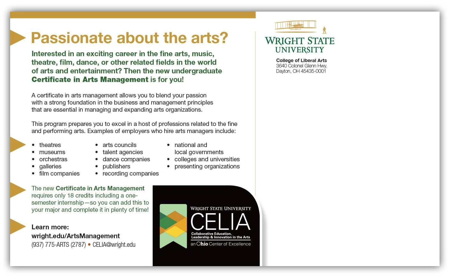 Front and back of a program-specific recruitment flyer, aligning it with a cohesive design family to complement other materials displayed at the same recruiting event, ensuring visual consistency and brand recognition